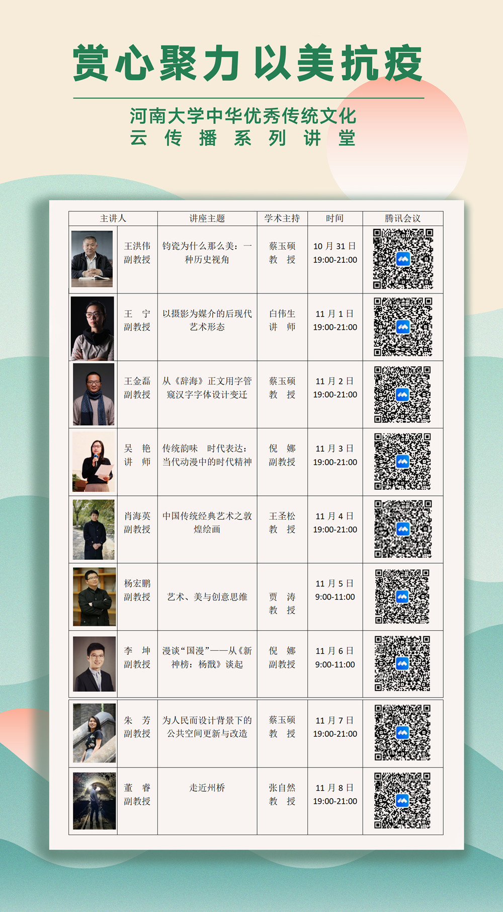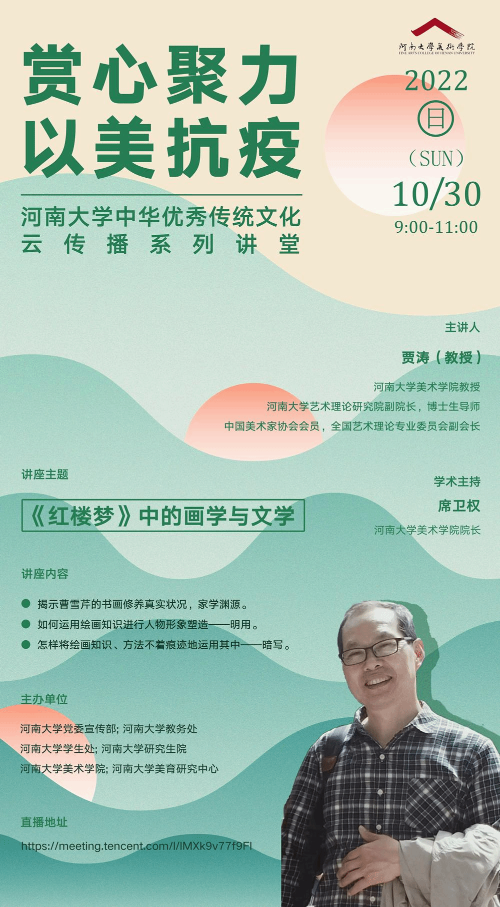 10月29日-11月8日,“赏心聚力、以美抗疫——乐动在线中华优秀传统文化云传播系列讲堂”开讲啦!十位乐动在线美术学院的老师与“你”相约云端,意会古今,温馨畅神。让我们静下心来,共同开启一场中华优秀传统文化的大美之旅;让我们一起努力,弘扬中华优秀传统文化,铸就社会主义文化新辉煌!