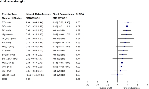 本研究通过系统评价和网状meta分析的方法,结合了24种运动类型和对照组250项随机对照试验的11个有效性结局指标,最终比较并排序了不同运动方式对缓解和改善帕金森病患者运动症状、非运动症状、肌肉力量和跌倒风险等的影响。最终纳入250项研究,涉及13 011名参与者。其结果表明爆发力运动模式在缓解帕金森病患者整体运动症状以及改善肌肉力量方面效果最佳;身体支撑的跑步机训练在缓解肢体平衡、提高步速与行走距离方面表现出更佳的优势;瑜伽与跳舞的运动形式对改善非运动症状具有明显效应。该研究提示单个与组合运动模式对帕金森病临床症状具有显著改善效果,凸显其模式作为治疗性运动主动行为的重要性,其结论为解释帕金森病外周中枢机制有借鉴意义,为辅助改善帕金森病尤其前驱期症状防护提供了重要的启示。