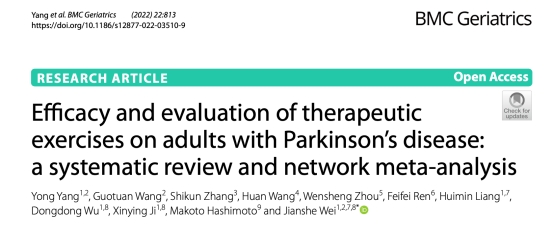 2022年10月21日,乐动在线生命科学学院脑科学研究所魏建设教授研究团队在国际医学顶级期刊BMC Geriatrics(一区Top,IF =4.070)发表了题为“Efficacy and evaluation of therapeutic exercises on adults with Parkinson’s disease:a systematic review and network meta-analysis”的最新研究论文,揭示了不同运动方式和类型在帕金森病运动和非运动症状疗效改善方面的综合评定效果。