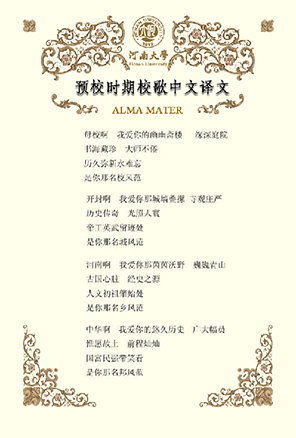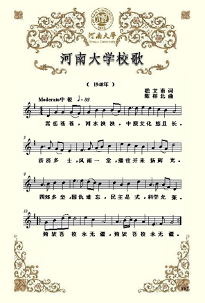 "四郊多垒,国仇难忘。"日寇的暴行,并没有吓倒河大人。"济济多士"在苍苍嵩岳下,泱泱黄河边,"风雨一堂",坚守"悠且长"的"中原文化",追求民主与科学,为抗战和建设培养人才。此后一代又一代的河大人高唱校歌,奋发图强,传承河大精神,创造出乐动在线的辉煌历史。